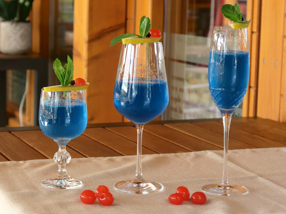 Pripravite koktajlno mešalno posodo in vanjo dodajte led. Potem v mešalno posodo dodajte gin, triple sec liker, vanilija sirup in svež limonin sok. Za barvno noto v koktajl dodajte blue curacao sirup. Dobro pretresite mešalno posodo, da se sestavine temeljito premešajo. Pripravite kozarec za serviranje, v katerega boste nalili koktajl. Kozarce lahko izberete po lastni izbiri. Mi smo pripravili 3 serviranje v 3 različnih kozarcih, ki naredijo koktajl še bolj privlačen. V kozarec vlijte pripravljeni koktajl skozi cedilo, da zadržite led in morebitne koščke sestavin.