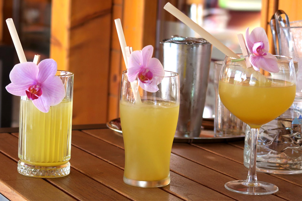 Grajski koktajl je prefinjen napitek, ki združuje gin, triple sec liker, vanilija sirup in blue curacao sirup z dodatkom penine. Poletna avantura na hribu je svež koktajl, ki vključuje vodko in mango pire, dopolnjen z domačo limonado. In za tiste, ki iščejo brezalkoholne možnosti, je tu Lokal in sedem palčkov, ki vključuje mešanico pomarančnega, jabolčnega in limoninega soka ter granatina sirup, dopolnjeno s Fanto. Vsak recept vsebuje navodila za pripravo in nasvet za postrežbo.