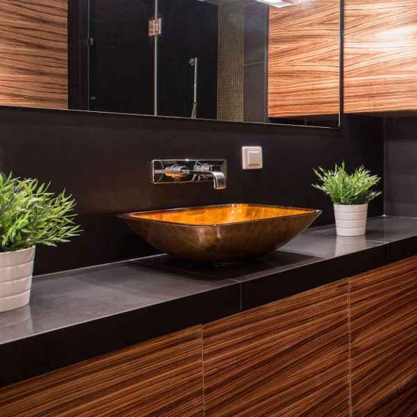Sodobni in elegantni umivalniki v obliki posode so neverjetno dovršeni. Ti navadno niso zidni, temveč se popolnoma prilegajo podstavku ali celo kopalniški enoti s predali.