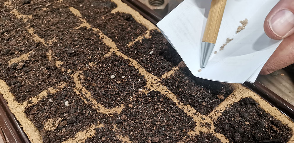 Semena paradižnika, paprike, čilija in ostalih plodovk položite na zemljo za setev in pikiranje in ga nato s prstom ali svinčnikom rahlo potisnete v substrat.