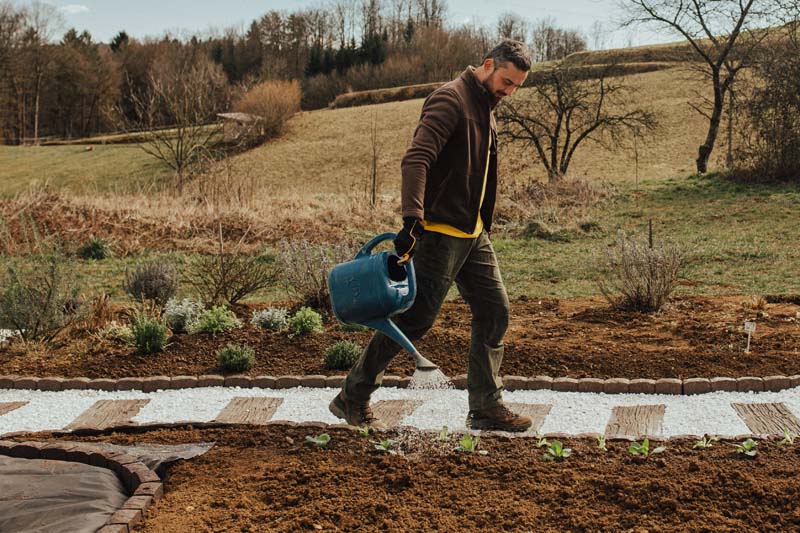 Večjo porabo vode v poletnem času bom zmanjšal z uporabo zelenih kock in zelene podlage, ki so povsem naravnega izvora in ne vsebujejo nobenih umetnih dodatkov. Na pripravljeno zemljo sadimo in sejemo.