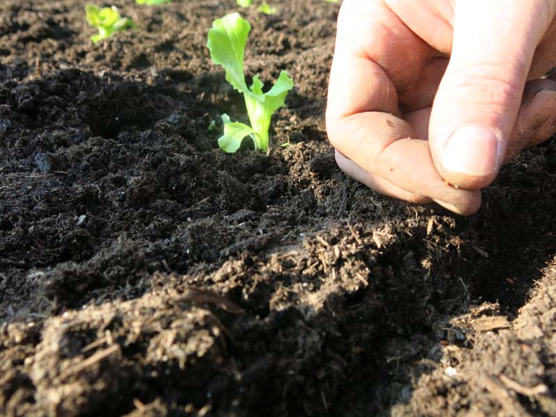 Najhitrejši pridelek omogoča kombinacija sadik solate in redkvice, ki jo sejemo med solato. Sadike solate sadimo na razdaljo 30 do 40 cm.