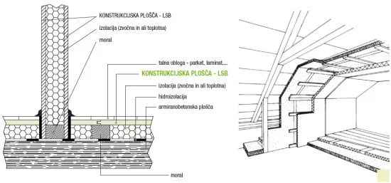 Neravnine obrusite. Pred polaganjem talnih oblog vlažnost plošč ne sme presegati 8 %.
