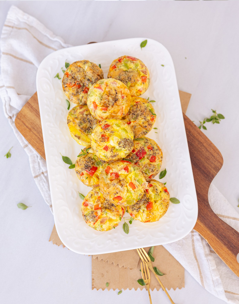 Recept za "pica jajčne mafine s paprikami" je popolna kombinacija jajc, sveže zelenjave in šunke, zapečena v slastne mini pice.