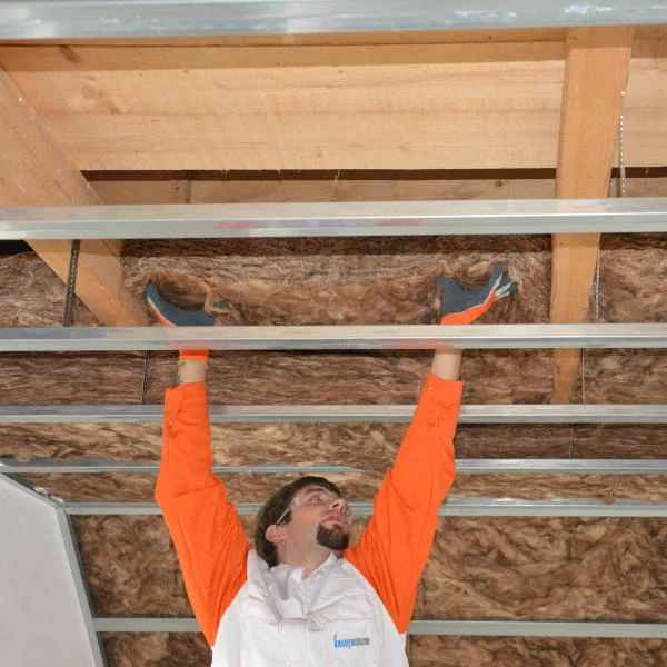 Na tleh in stropu spodnjega nadstropja zadostuje le dobra zvočna izolacija, ki pa hkrati zagotavlja tudi kakovostno toplotno izolacijo. Toplotna izolacija sicer ni potrebna, saj toplota prehaja skozi strop na podstrešje in se s tem ogreva tudi ta prostor.