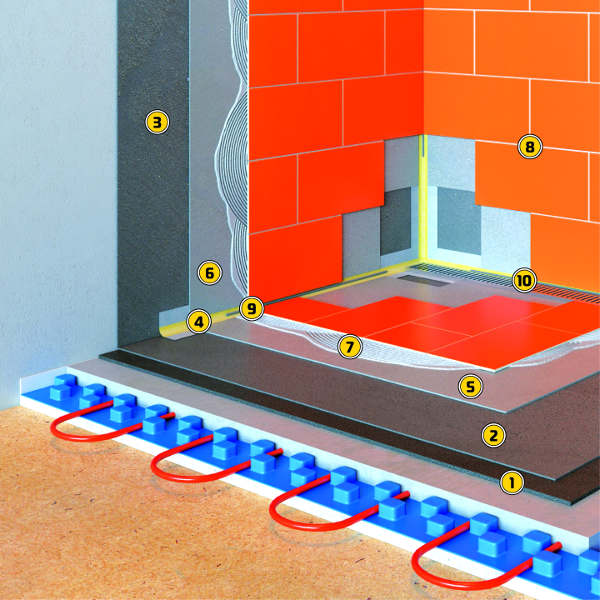 Na talni površini je pred polaganjem keramike potrebno izvesti dvojni nanos z vodotesno maso, ki bo zagotavljala zaščito pred vodo in fleksibilnost. Zaščita je potrebna kljub nanosu lepil za keramikom, saj ta ne zagotavljajo popolne vodotesnosti.