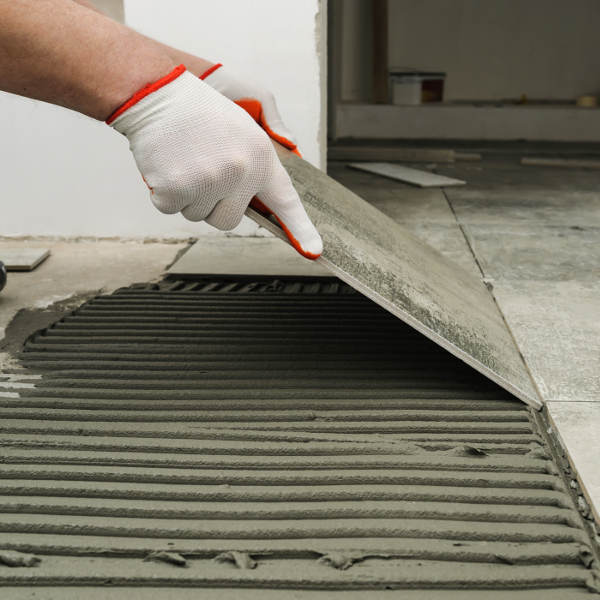 Za tankoslojno izravnavo podložnih betonov in estrihov pred polaganjem ploščic je primerna posebna izravnalna masa. Nanjo mora biti v mokrih prostorih, kot je kopalnica, nanešena tudi cementna hidroizolacija.