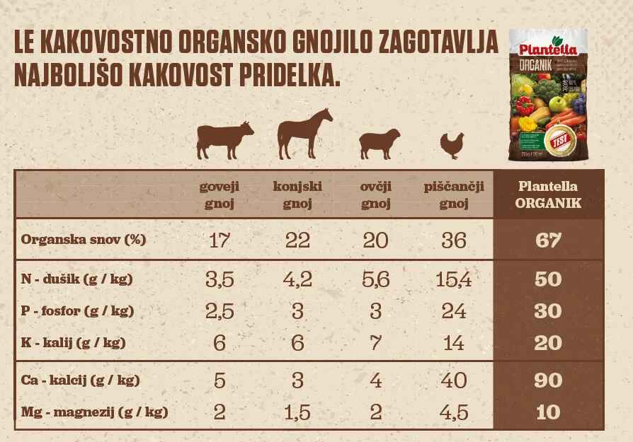 Količina oz. vsebnost organske in suhe snovi v gnojilu sta najpomembnejša podatka, ki jih moramo upoštevati pri nakupu organskih gnojil.
