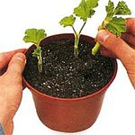 Podtaknimo poganjke 2,5 cm globoko v vlažen setveni substrat za podtaknjence in rahlo potlačimo.