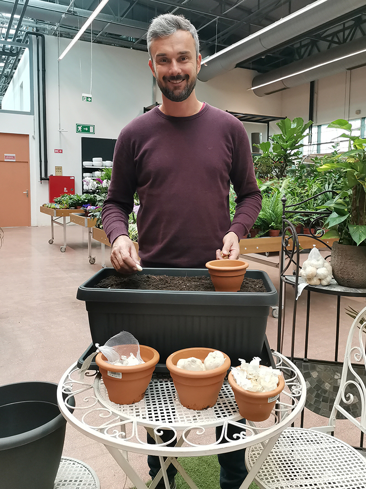 V visoki gredi lahko gredo dopolnimo z novo zemljo, če se je med letom posedla in ga posadimo v kombinaciji s sadikami zimske solate. Pri sajenju v korita izberemo večje in široko korito, da pridelamo več mladega česna za svoj solatni krožnik in jo napolnimo z zemljo skoraj do vrha.