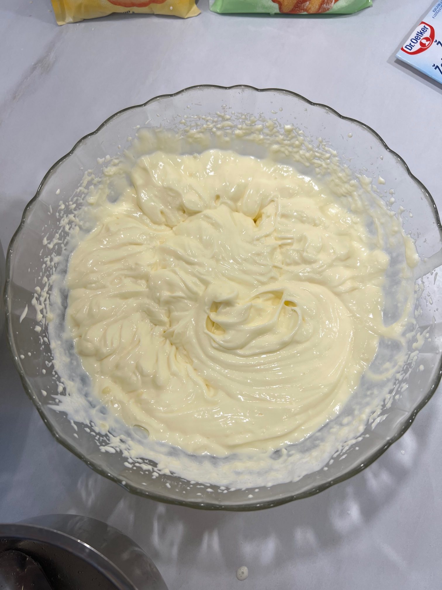- Sladko smetano stepamo do točke, ko se začne peniti.