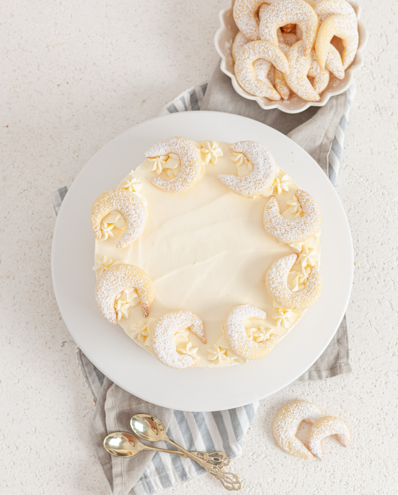 Torta Vanilija - z vanilijevimi rogljički je poslastica za vse ljubitelje sladic. Sestavljena iz vanilijevega pudiga, piškotnih rogljičkov in sladke smetane, bo pocrkljala prav vsakogar.