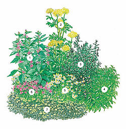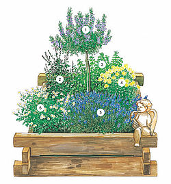 1. rožmarin (Rosmarinus officinalis); ker ni odporen proti zmrzali, ga postavite na gredico v večjem loncu, pozimi pa ga hranite v svetlem in toplem prostoru. Rožmarinova kopel poživlja.
