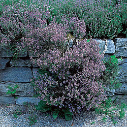 Košček Sredozemlja - Timijan (Thymus vulgaris), ki se razrašča čez kamnit zid, pritegne marsikateri pogled. Bolj ko ga boste obrezovali, bolj košat bo.
