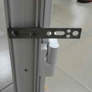 1. Jeklene jezičke z vijaki pritrdite na vratni okvir v oddaljenost do največ 20 cm od nasadilcev v obe smeri. Jezički na posamezni strani naj bodo oddaljeni približno 40 cm, upognite pa jih tako, da se jih lahko pritrdi na steno.
