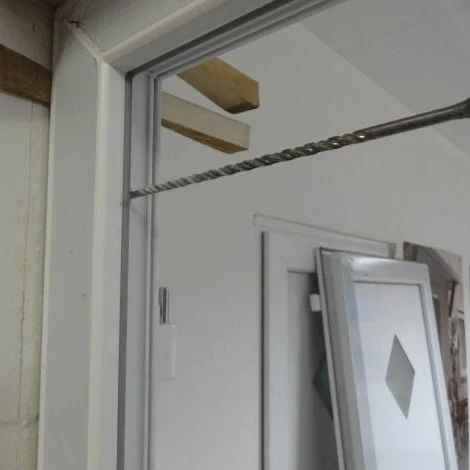 Montaža z montažno palico je podobna montaži z vijaki za pritrditev vratnega okvirja. Vgradnjo sestavljajo naslednji koraki: