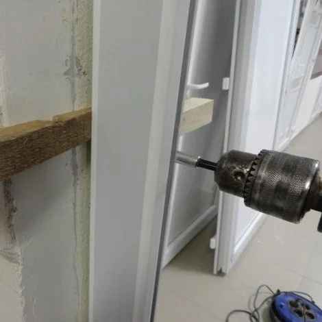 Skozi luknje na okvirju vrat izvrtajte luknje tudi v steno in vstavite vijake za pritrjevanje vratnih ali okenskih okvirjev, da okvir ostane stabiliziran in ga ni mogoče premikati.