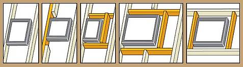 Da bi si olajšali vgradnjo, odstranimo okensko krilo. Tako bomo najprej vgradili samo okenski okvir. Najprej zasilno na streho pritrdimo kotnike. Sedaj lahko okenski okvir potisnemo v odprtino, ter ga naravnamo, kotnike pa fiksno pritrdimo v špirovce. Ko končamo s tem, lahko okensko krilo obesimo nazaj v okvir.