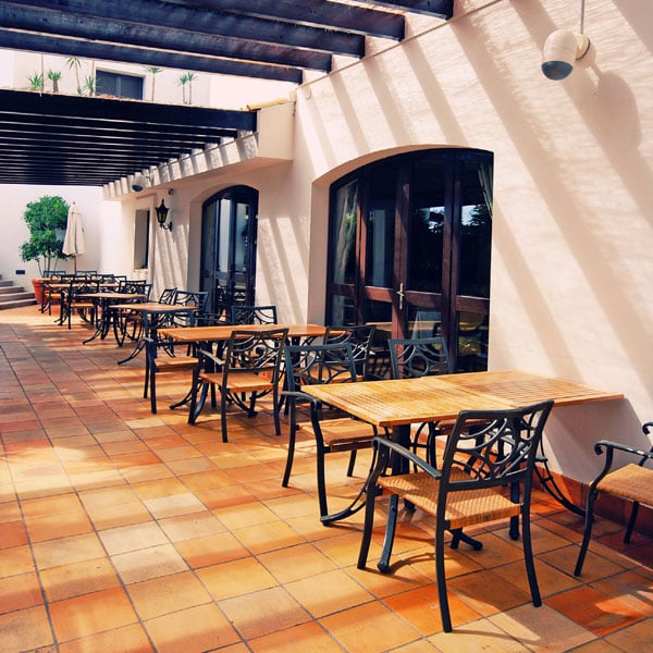 Za zunanjo uporabo so najprimernejše obloge iz granitogres ploščic ali pa lomljenci. Struktura materiala zagotavlja manjšo vpojnost vode in nedrsečo strukturo, ki se jo doseže bodisi z mat bodisi z reliefno površino.