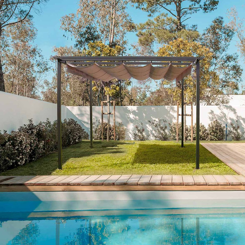 Če paviljon za druženje uporabljate le v poletnih dneh, se lahko pozimi z dodatkom ponjave spremeni v priročno shrambo, ki bo vašo vrtno garnituro in drugo vrtno opremo učinkovito ščitil pred dežjem, vetrom in snegom. Ob prvih pomladnih žarkih ponjavo preprosto umaknete in že ste pripravljeni na novo sezono piknikov in vrtnih zabav.
