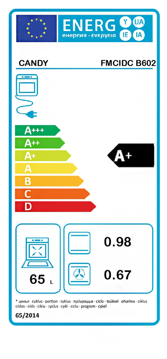 Blagovna znamka CANDY VRSTA VGRADNE PEČICE VGRADNA PEČICA PROSTORNINA 65 L ŠTEVILO PROGRAMOV 8 ŠIRINA 59,5 CM VIŠINA 59,5 CM GLOBINA 56,8 CM BARVA BELA ENERGIJSKI RAZRED A+ GARANCIJA V LETIH 2 DOD.JAMSTVO/POGOJI GARANTA/LET 3 -