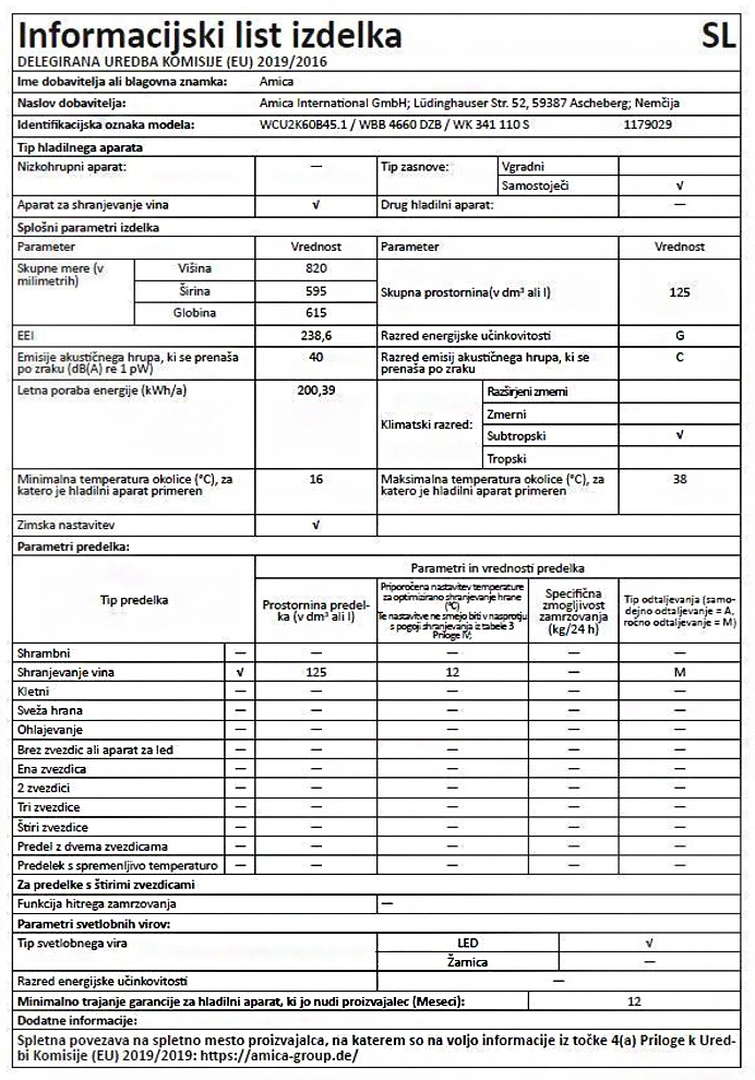 VGRADNA VINSKA VITRINA AMICA WCU2K60B45.2