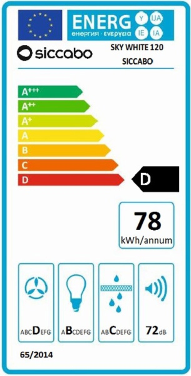 Blagovna znamka SICCABO ENERGIJSKI RAZRED D VRSTA NAPE STROPNA UPRAVLJANJE ELEKTRONSKO LETNA PORABA ENERGIJE 78 KWH RAZRED UČINKOV. PRETOKA ZRAKA D RAZRED UČINKOV. OSVETLJEVANJA B GLASNOST DELOVANJA 72 DB RAZRED UČINKOV. FILTR. MAŠČOB C ŠIRINA 120 CM BARVA BELA GARANCIJA V LETIH 5 LET Mnenja