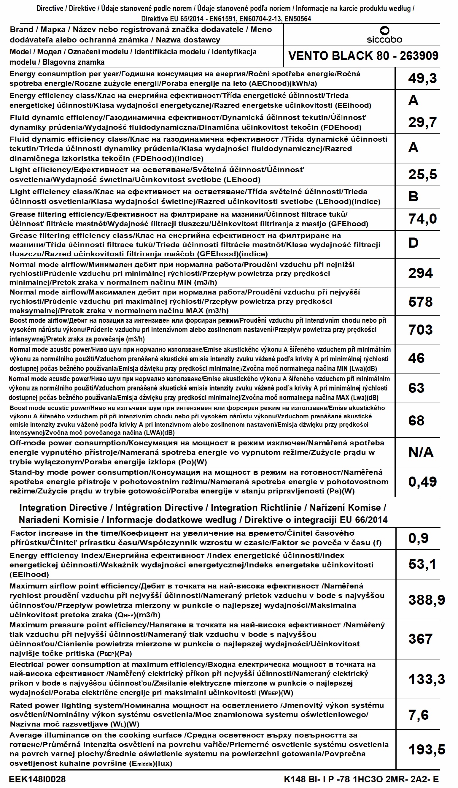 Blagovna znamka SICCABO ENERGIJSKI RAZRED A VRSTA NAPE VGRADNA UPRAVLJANJE Z GUMBI LETNA PORABA ENERGIJE 49 KWH RAZRED UČINKOV. PRETOKA ZRAKA A RAZRED UČINKOV. OSVETLJEVANJA B GLASNOST DELOVANJA 63 DB RAZRED UČINKOV. FILTR. MAŠČOB D ŠIRINA 80 CM BARVA ČRNA GARANCIJA V LETIH 5 Mnenja