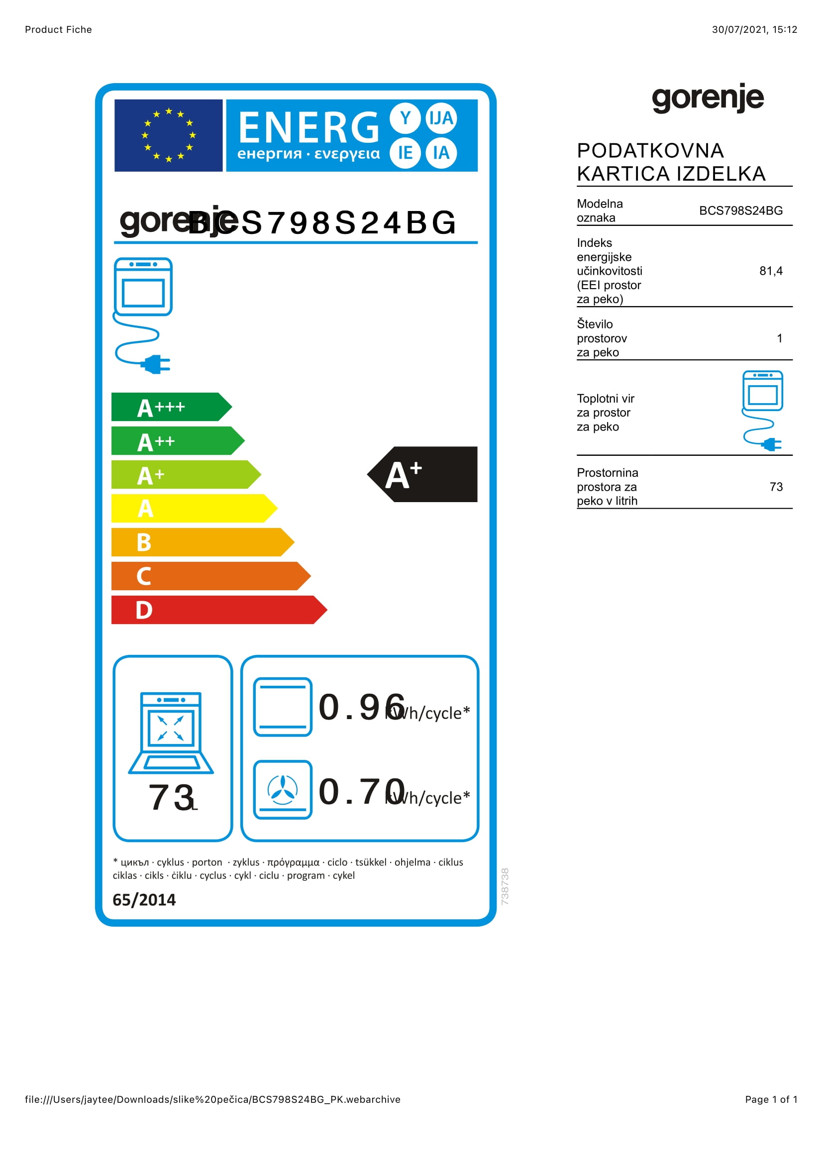 Blagovna znamka GORENJE ENERGIJSKI RAZRED A+ VRSTA VGRADNE PEČICE KOMBINIRANA S PARO PROSTORNINA 77 L UPRAVLJANJE ELEKTRONSKO VRSTA PEČICE KONVENCIONALNA S KOMBINACIJO PARE ZASTEKLITEV VRAT TROJNA ŠIRINA 59,5 CM NAČIN ČIŠČENJA AQUACLEAN GLOBINA 54,6 CM POVEZLJIVOST WI-FI NE VIŠINA 59,5 CM GARANCIJA V LETIH 5 Mnenja
