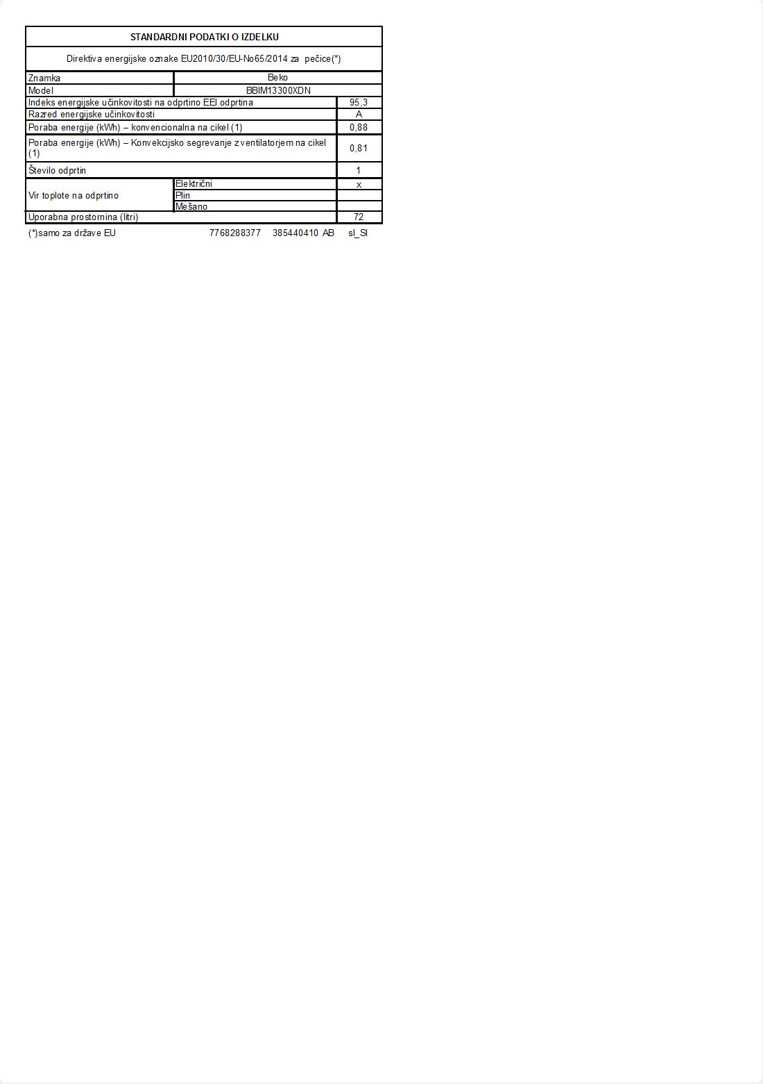 Blagovna znamka BEKO ENERGIJSKI RAZRED A VRSTA VGRADNE PEČICE VGRADNA PEČICA PROSTORNINA 72 L UPRAVLJANJE ELEKTRONSKO VRSTA PEČICE VEČFUNKCIJSKO ZASTEKLITEV VRAT DVOJNA ŠIRINA 59,4 CM NAČIN ČIŠČENJA AQUACLEAN GLOBINA 56,7 CM POVEZLJIVOST WI-FI NE VIŠINA 59,5 CM GARANCIJA V LETIH 2 LETI Mnenja