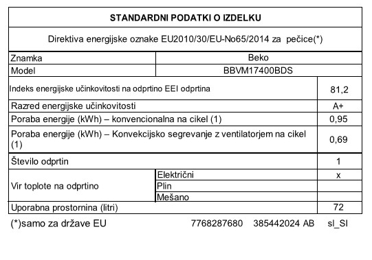 VGRADNA PEČICA BEKO BBVM17400BDS