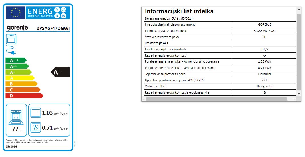 Blagovna znamka GORENJE ENERGIJSKI RAZRED A+ VRSTA VGRADNE PEČICE VGRADNA PEČICA PROSTORNINA 77 L UPRAVLJANJE MEHANSKO VRSTA PEČICE VEČSISTEMSKA ZASTEKLITEV VRAT ŠTIRIKRATNA ŠIRINA 59,5 CM NAČIN ČIŠČENJA PIROLIZA GLOBINA 56,4 CM POVEZLJIVOST WI-FI DA VIŠINA 59,5 CM GARANCIJA V LETIH 5 Mnenja