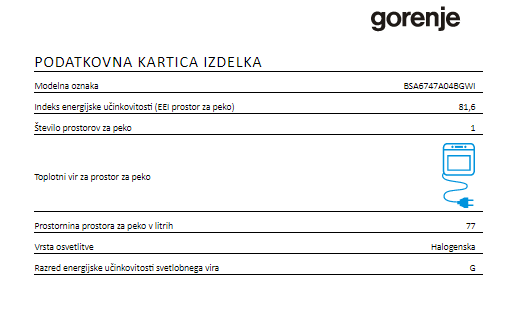VGRADNA PEČICA GORENJE BSA6747A04BGWI