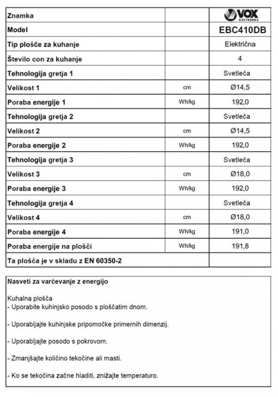 Blagovna znamka VOX VRSTA VGRADNE PEČICE VGRADNA PEČICA PROSTORNINA 73 L BARVA BELA ŠIRINA 59,5 CM VRSTA PEČICE VEČFUNKCIJSKO VIŠINA 59,5 CM GLOBINA 57,5 CM ZASTEKLITEV VRAT DVOJNA NAČIN ČIŠČENJA BREZ UPRAVLJANJE ELEKTRONSKO POVEZLJIVOST WI-FI NE ENERGIJSKI RAZRED A GARANCIJA V LETIH 5 LET - Mnenja