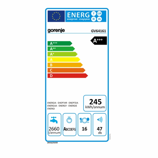 Vgradni pomivalni stroj priznanega slovenskega proizvajalca Gorenje odlikuje možnost pomivanja do 16 standardnih pogrinjkov. V sam vrh ga uvršča avtoprogram, ki ne glede na stopnjo umazanije posodo očisti do popolnosti, temu pa pripomorejo tudi štirje nivoji brizganja in dve brizgalni ročici. Enostavno upravljanje aparata poteka na dotik, izbira med programi pa je vidna na LED zaslonu, ki ga dopolnjuje svetlobni indikator ter pokazatelj nastavitev z možnostjo zakasnitve začetka pomivanja. Kljub napredni tehnologiji in povišani moči delovanja aparata, ta ne oddaja veliko hrupa.