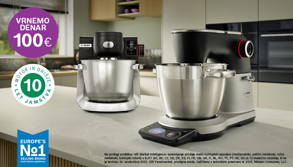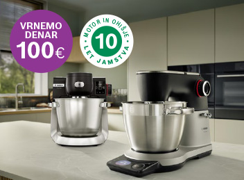 Od 1. 2. 2026 do 30. 4. 2026 ob nakupu kuhinjskih robotov Bosch serie 6 in serie 8 pridobite 100 EUR kupnine.