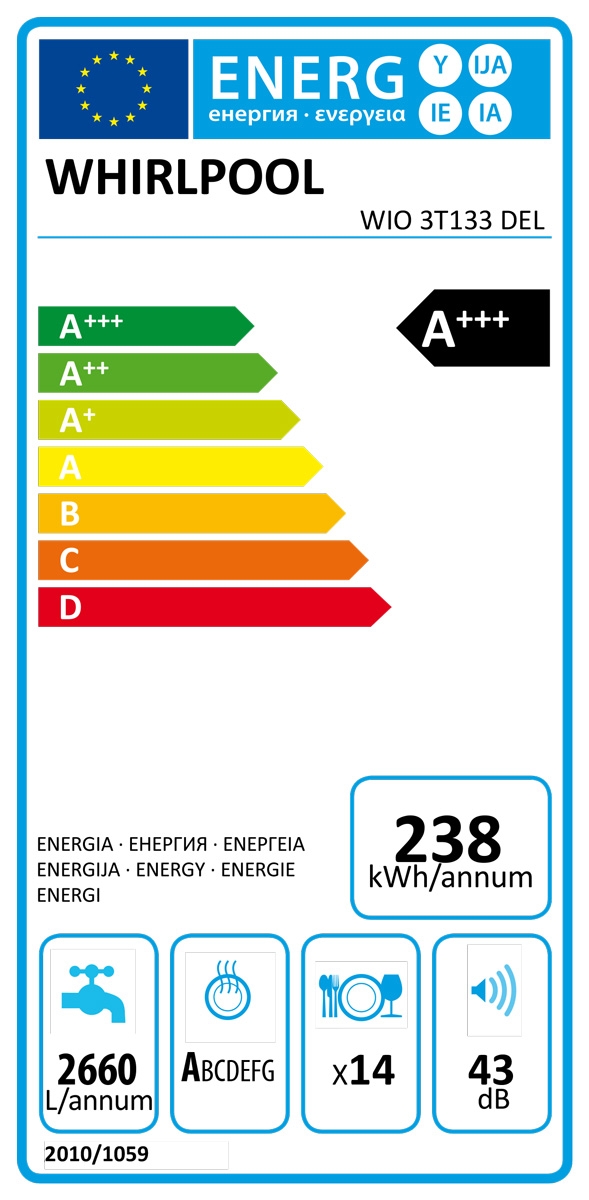 WHIRLPOOL POMIVALNI STROJ VGRADNI WIO 3T133 DEL