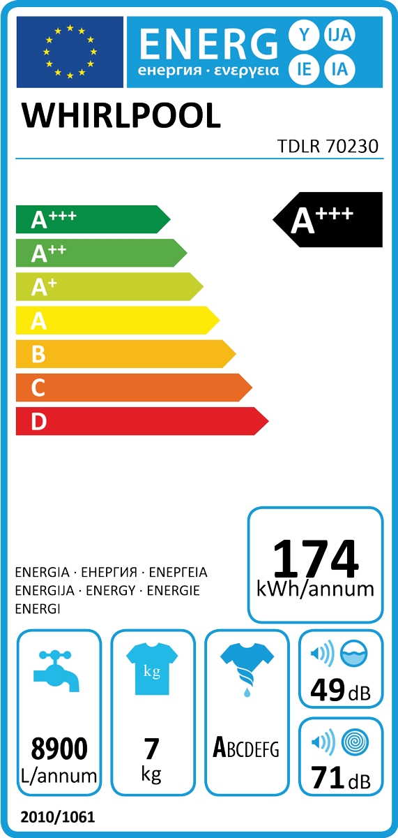 WHIRLPOOL PRALNI STROJ Z ZGORNJIM POLNJENJEM TDLR 70230
