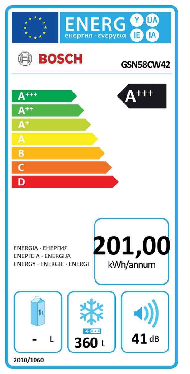 Blagovna znamka BOSCH VRSTA ZAMRZOVALNEGA APARATA PROSTOSTOJEČA OMARA BARVA BELA ŠIRINA 70 CM PROSTORNINA ZAMRZOVALNI DEL 360 L VIŠINA 191 CM LETNA PORABA ELEKTRIČNE ENERG. 201 KWH GLOBINA 78 CM SAMODEJNO ODTAJEVANJE-NO FROST DA ZMOGLJIVOST ZAMRZOVANJA 22 KG/24 H SHRANJEVALNI ČAS OB MOTNJAH 25 H GLASNOST DELOVANJA 41 DB INVERTER MOTOR NE ENERGIJSKI RAZRED A+++ KLIMATSKI RAZRED SN-T: +10 DO +43°C GARANCIJA V LETIH 2 LETI - Mnenja