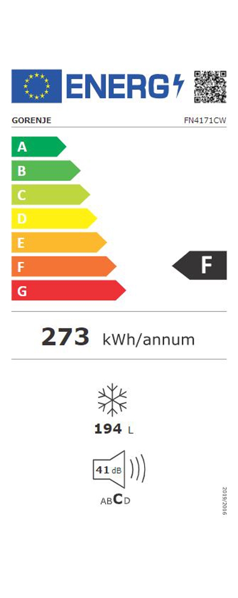 Blagovna znamka GORENJE ENERGIJSKI RAZRED F VRSTA ZAMRZOVALNEGA APARATA PROSTOSTOJEČA OMARA PROSTORNINA ZAMRZOVALNI DEL 194 L LETNA PORABA ELEKTRIČNE ENERG. 273 KWH SAMODEJNO ODTAJEVANJE-NO FROST DA ZMOGLJIVOST ZAMRZOVANJA 15 KG/24 H ŠIRINA 55 CM SHRANJEVALNI ČAS OB MOTNJAH 11 H GLOBINA 55,7 CM INVERTER MOTOR NE BARVA BELA KLIMATSKI RAZRED N: +16 DO +32°C ST: +18 DO +38°C T: +16 DO +43°C EMISIJA HRUPA 41 DB RAZRED EMISIJE HRUPA C POVEZLJIVOST WI-FI NE VIŠINA 169,1 CM GARANCIJA V LETIH 5 LET Mnenja